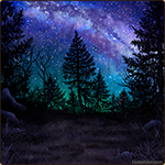 Generally I like the style. I'm just not sure about the brown leather clashing with his overall thema as it is repeated nowhere else... maybe something brown like a hare or a bird to repeat it?