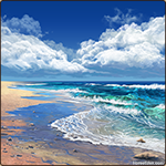 Generally I like the style. I'm just not sure about the brown leather clashing with his overall thema as it is repeated nowhere else... maybe something brown like a hare or a bird to repeat it?