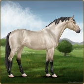 Name: Bugsy X He EEEAge: 4 Mare Color: Buckskin Pearl Splash White Breed: Irish Sport Horse Foal Rating: E/E/E |  |