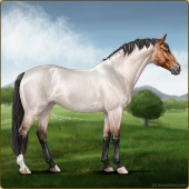 Name: 40664832Age: 5 Gelding Color: Buckskin Roan Breed: Sport Horse Foal Rating: P/P/P |  |