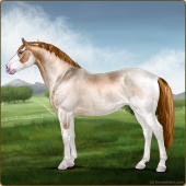 Name: Bugsy X Si EEEAge: 3 Mare Color: Flaxen Red Roan Splash White Breed: Irish Sport Horse Foal Rating: E/E/E |  |