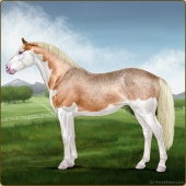 Name: 41760185PPEAge: 1 Gelding Color: Palomino Pearl Roan Splash White Sabino Breed: Irish Sport Horse Foal Rating: P/P/E |  |