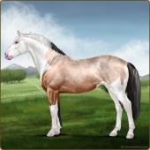 Name: Bugsy X PEPAge: 3 Gelding Color: Dunskin Pearl Splash White Breed: Irish Sport Horse Foal Rating: P/E/P |  |